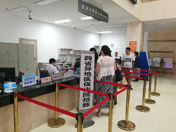 在贵州省人民医院跨省异地医保出院结账办理处,就医人员在结账(7月18日摄)。经过多年筹备,跨省异地就医结算已在部分地区实现。当前,除西藏外,全国各省份均整体或部分接入国家基本医疗保险异地就医结算系统。在国家规划的健康中国“施工图”上,2017年9月底前,国家异地就医结算系统将全面启动、联网运行。新华社记者 李黔渝 摄