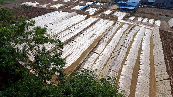 7月29日,广西河池市都安瑶族自治县东庙乡东庙村晾晒场晒满了旱藕粉。旱藕粉是广西都安瑶族自治县的特色农产品,近年来,该县大力发展旱藕种植,形成旱藕粉丝产供销“一条龙”,产品远销东南亚地区,成为当地群众脱贫致富的重要产业。 新华社发(高东风摄)