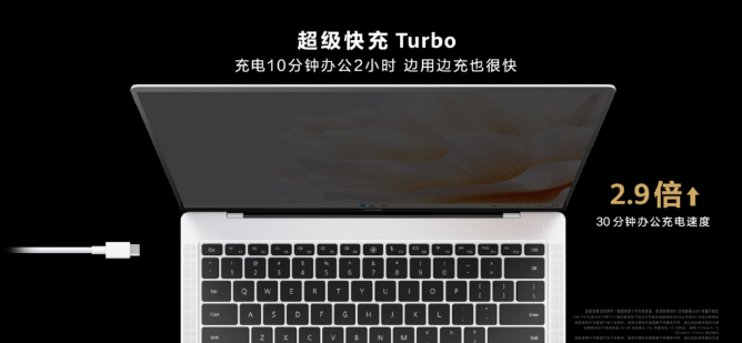 性能方面,华为MateBook X Pro搭载了13代酷睿处理器、2GB+2TB超大存储,以及全新升级的Super Turbo技术,开机只需8s,十分快速。而且,不止开机快,打开一个1.5G的PPT速度提升约43%,工作汇报效率大大提高。此外,在超级快充Turbo的加持下,华为MateBook X Pro30分钟Turbo充电速度提升了2.9倍,90w小巧充电器,充电10分钟即可办公2小时 。