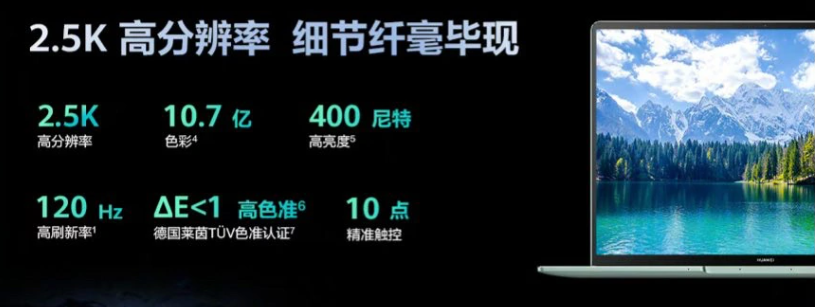 屏幕方面,华为MateBook 14s搭载了了一块2520×1680高分辨率触控显示屏,支持120Hz刷新率、213 PPI像素密度、400 nits峰值亮度,以及平均∆E1的专业级高色准和莱茵专业级色准认证,实现所见即所得。