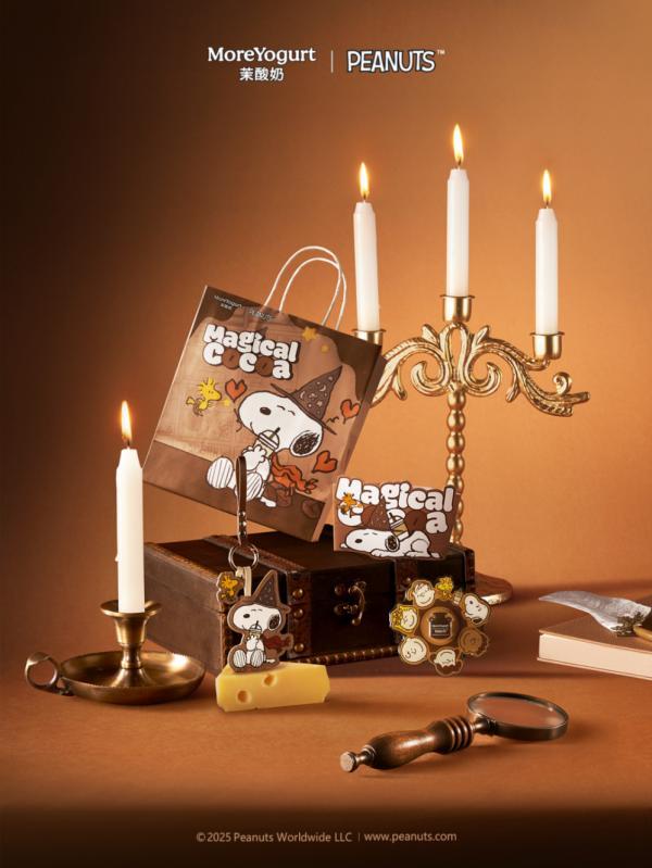 近期,茉酸奶与花生漫画的联名在社交平台掀起打卡热潮,其“Magical Cocoa”主题的饮品及限定周边,不仅是网友拍照打卡的氛围感搭子,更唤醒了大家的童年记忆。当人们驻足门店前,手持印着史努比的饮品,消费的不只是一杯酸奶,还有那份被瞬间激活的集体回忆与治愈感——因为“幸福是一只温暖的小狗”。
